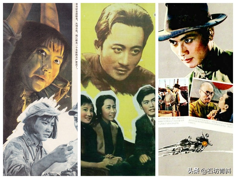 左起:电影《红色娘子军》(1961)、《革命家庭》(1961)和《51号兵站》(1961)的海报局部