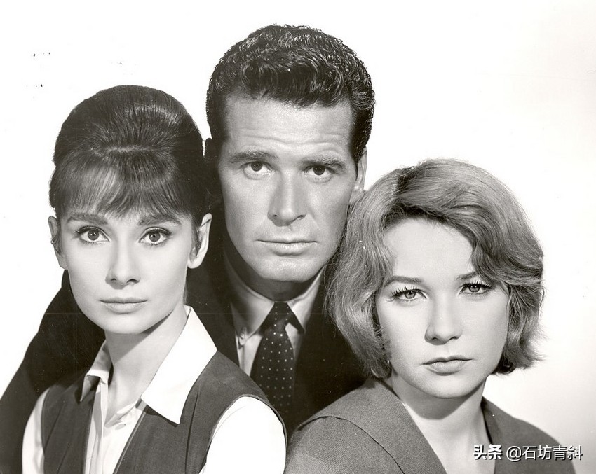 电影《双姝怨the children's hour》(1961)宣传照,左起:奥黛丽·赫本audrey hepburn、詹姆斯·嘉纳james garner和雪莉·麦克莱恩shirley maclaine