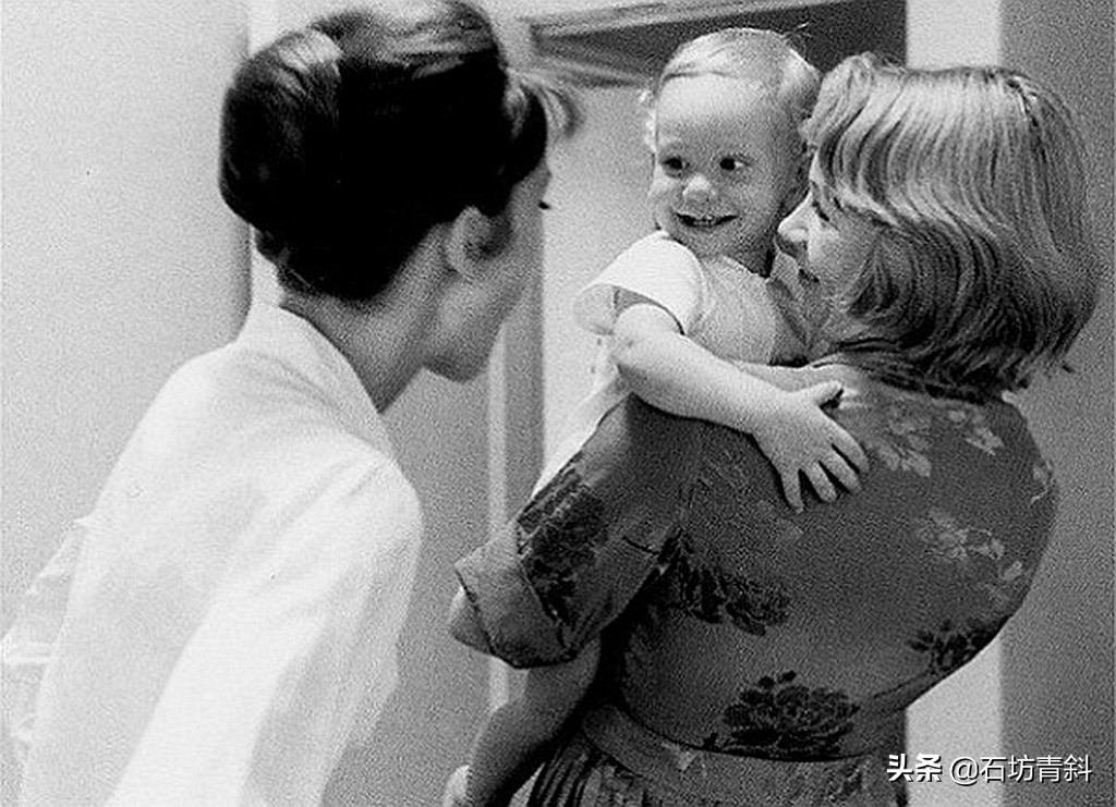 在电影《双姝怨the children's hour》(1961)片场,雪莉·麦克莱恩shirley maclaine(右)抱着奥黛丽·赫本audrey hepburn(左)不到1岁的儿子玩耍——当时的奥黛丽·赫本廋得令人吃惊