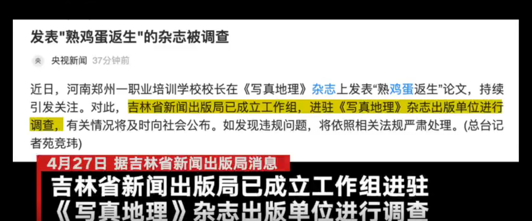 " ▲发表在《写真地理》杂志上的“熟鸡蛋返生”论文。网页截图