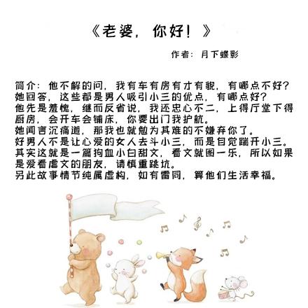3、《老婆,你好!》作者:月下蝶影