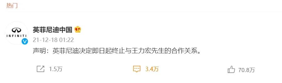 央视已经带头有所作为了,这次,王力宏恐怕没办法洗白、翻身了。周大生珠宝,英菲尼迪等品牌也都纷纷公布解约消息。英菲尼迪12月16日才公布和王力宏签约,没想到这才没几天就被迫解约,实在是笑话!