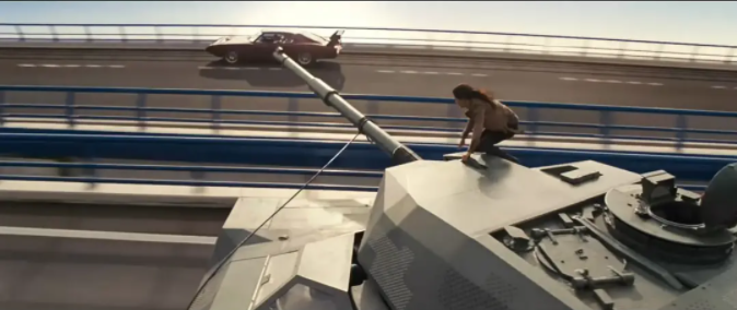 第六部则搬出了坦克,让汽车与坦克对飙。