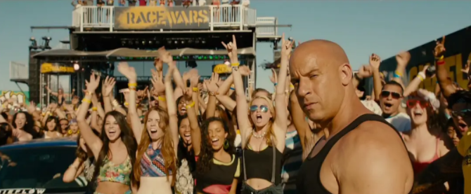 速激系列讲述范迪塞尔扮演的飞车党老大与其团队游走于正邪两道之间的故事,这样的故事已经连续拍了九部(注:2-3部范迪塞尔未出任主角)。