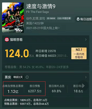 它就是将于5月21日上映的好莱坞大片《速度与激情9》,该片甚至比北美院线还要提前一个月。