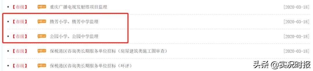 3月18日,重庆市公共资源交易中心网站,挂出了中央公园板块4所学校的监理招标公告。