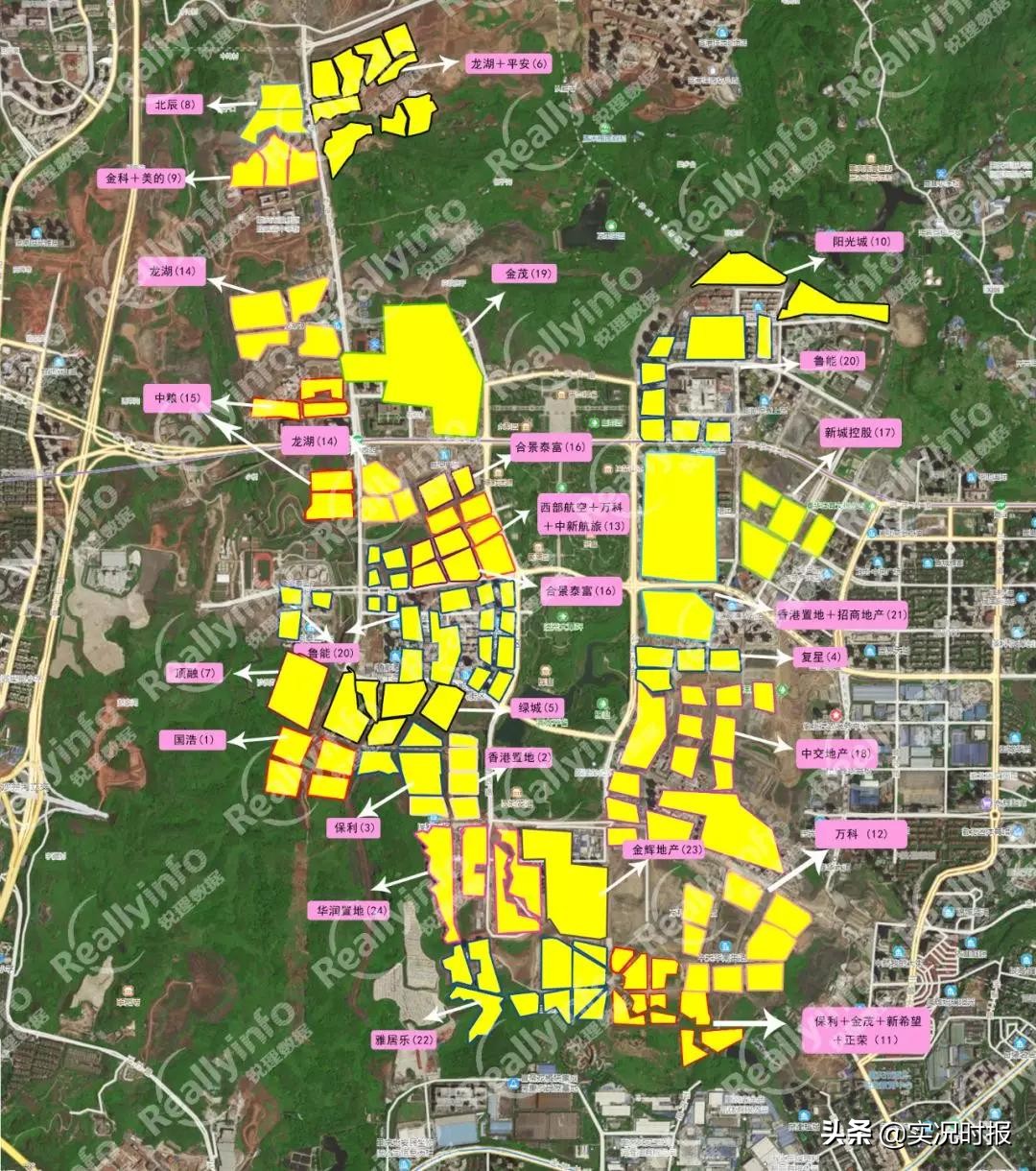 最后,我们来看一下中央公园的房企分布图。(来源:重庆锐理数据)