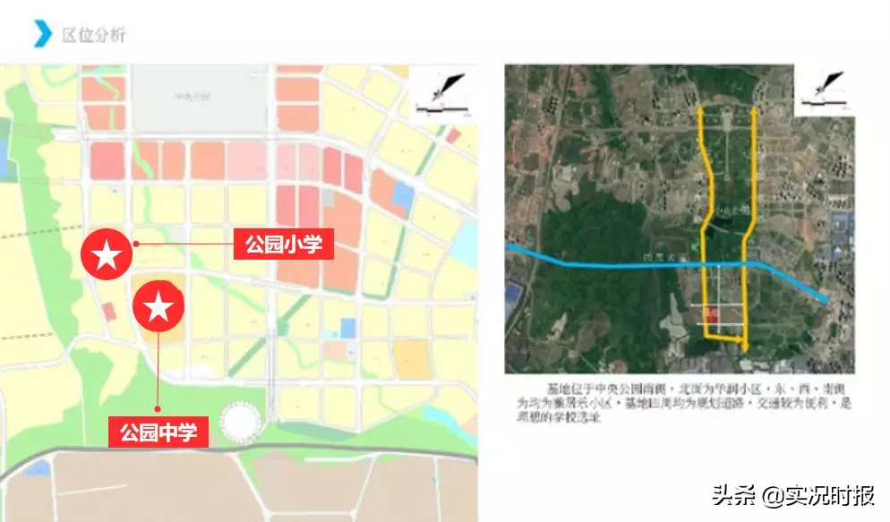 此次公告中所提到的四所学校分别为位于中央公园西侧的腾芳小学、腾芳中学;位于中央公园南面的公园小学、公园中学;四所学校均为公立新学校,同时四所学校的项目业主均为两江育才中学。