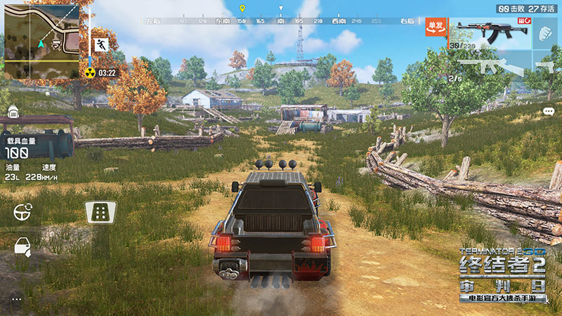 在《终结者2》荒野大逃杀中,玩家不仅可以操纵角色流畅做出站、蹲、趴、翻滚、攀扯等动作,对建筑物内外进行全面探索利用,还可以驾驶多种载具上演真正的生死时速。根据载具类型不同,能够承载的人员数量、防御生命值也不相同,适用于不同的地形及组队状态。载具不仅能够大幅提高角色的移动速度,同时也可作为战斗工具,在冲撞、飞越的过程中破解僵局,实现逆转反杀。