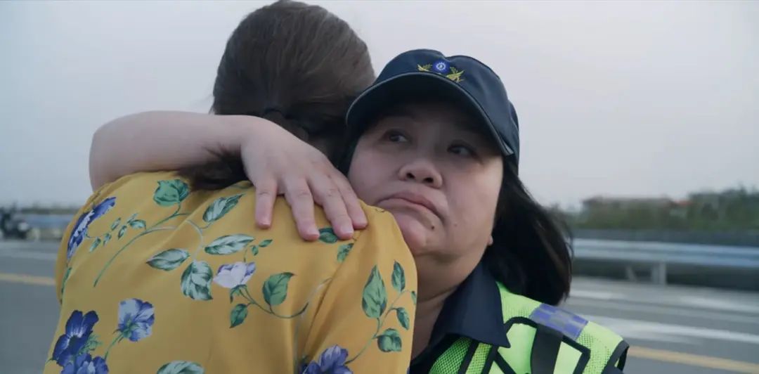 话还没说完,交警猛抱了她一下,然后说:“走!走!走!”