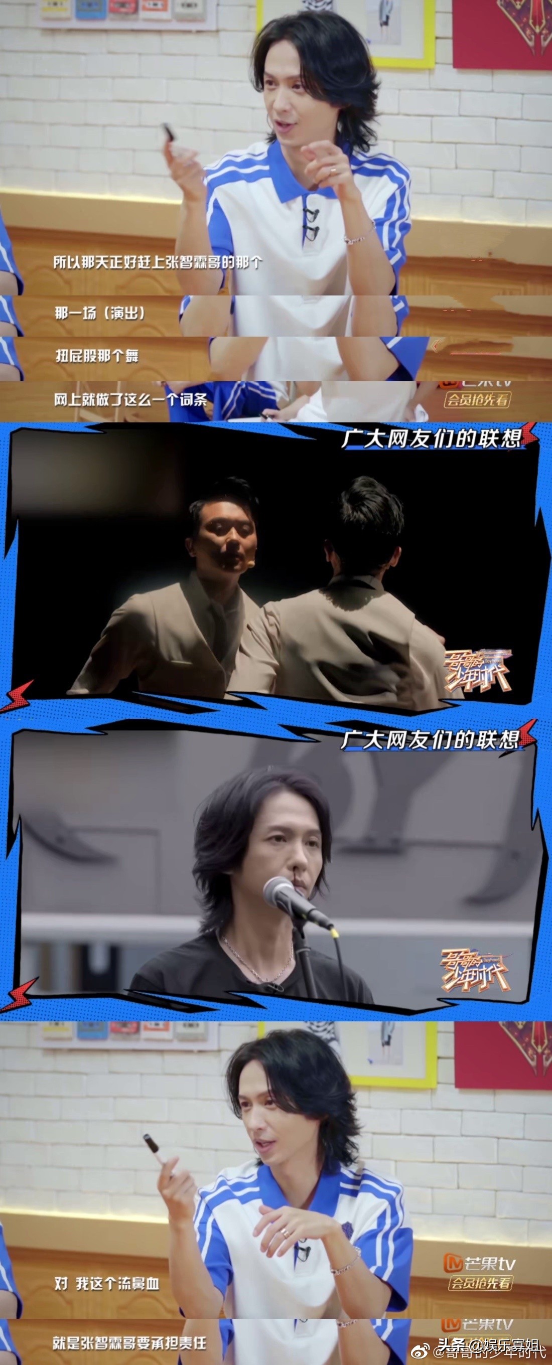 有被张淇哥哥油麦到,一本正经地解释自己不是因为张智霖跳舞才流鼻血也太可爱了叭!台上摇滚硬汉,台下笨蛋美人说的就是淇哥没错了。不得不说网友们的脑洞还真的是大,不过智霖哥的那段舞蹈是真的回味无穷。