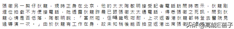 但是,就在2002年,张彻离世,狄龙却因为在拍《还珠3》而没能亲身去吊唁,只由儿子到场。