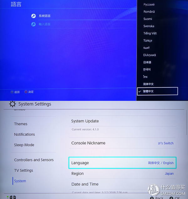ps4由于有港版以及国行版本,系统语言以及本土化支持都做的不错,ns系统语言只有日语与英语可选择;在游戏数量上ns由于是2017年年初才上市,数量还远不及ps4的作品。好在ns的游戏作品制作精良,中文化也很充足,优势不断凸显。