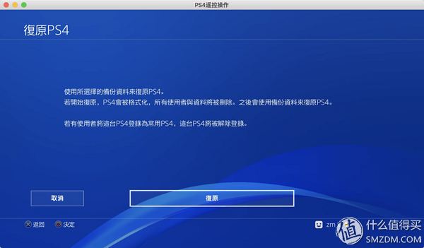 设置——系统——备份/还原——还原ps4(插入已经拷贝了备份文件的u盘)——选择备份资料——等待还原结束。