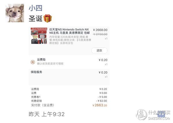 由于老婆大人非常喜欢双红手柄,于是就购买了马里奥奥德赛同捆版,其中包含ns主机、马里奥奥德赛实体卡带、马里奥定制收纳包等产品,淘宝入手价格为2600+。