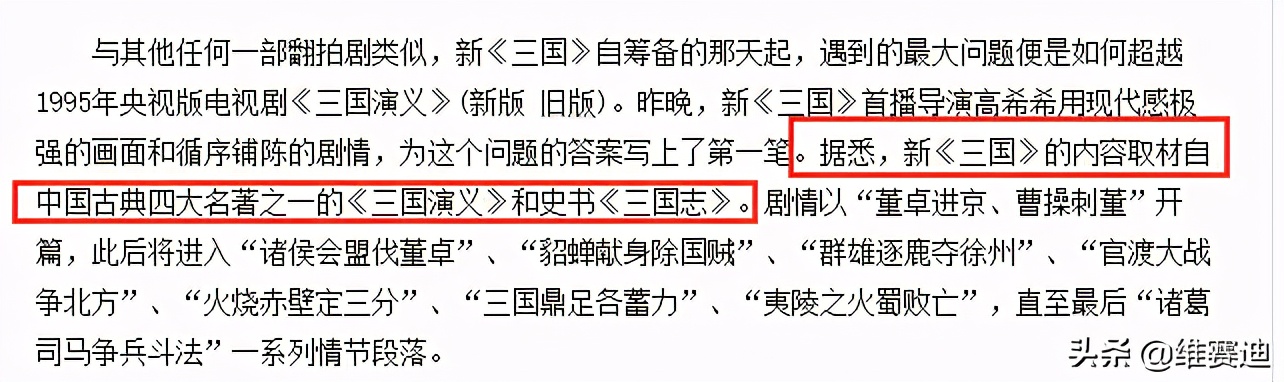 有拥护者可能又会说,2010年的这剧名叫《三国》,不是《三国演义》,后来大家为了区别1994版的才叫它《新三国》,跟小说无关。
