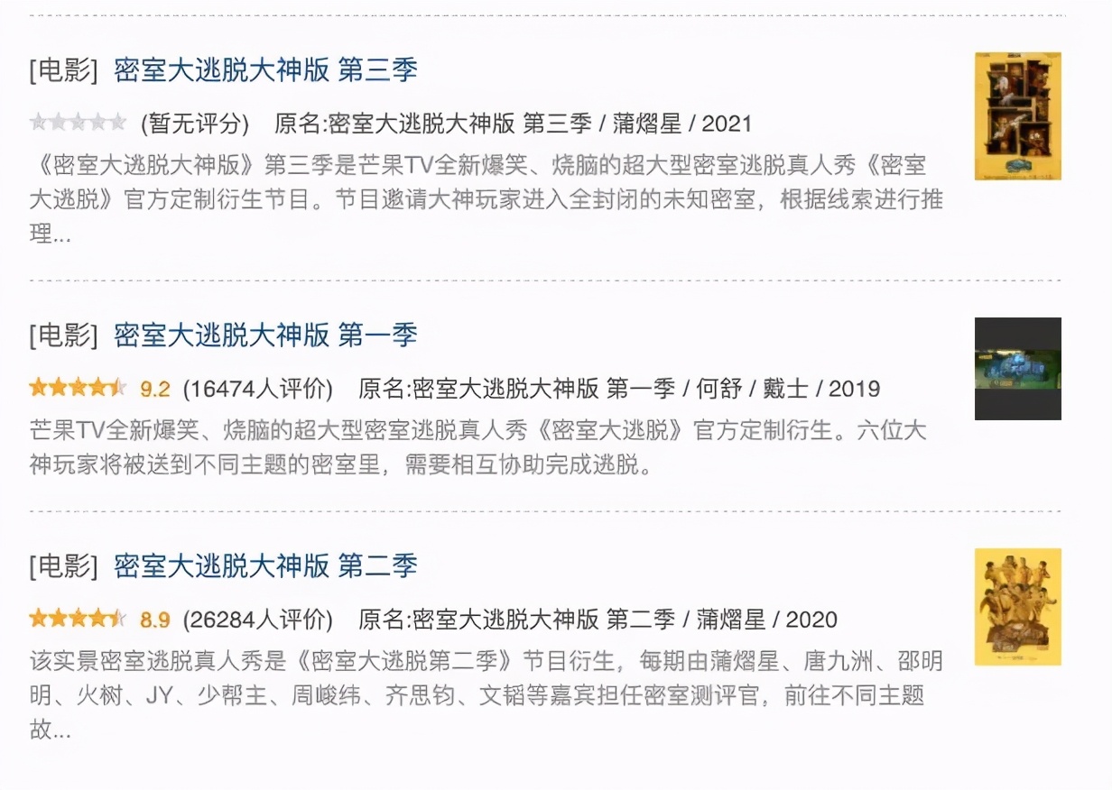 一方面,从《密逃》第一季开始,《密逃》就推出了《密逃 大神版》,大神版邀请蒲熠星、郭文韬、唐九洲等学霸嘉宾混搭高能玩家、网红素人嘉宾进行录制,相比明星版强调娱乐性与戏剧性,大神版作为内容补充,突出推理性与烧脑性。