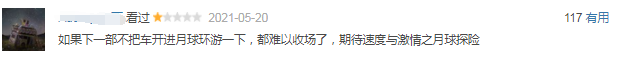其次,则是一些全无逻辑的神剧情节,最被人吐槽的当属开车上太空的奇葩片段。
