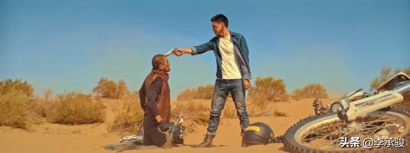 闫鹏见状也骑上一辆摩托车追了出去。两人在大漠上你追我赶,就在赤那即将逃到边界的那一刻,闫鹏终于追上了他,并拿枪指着他!