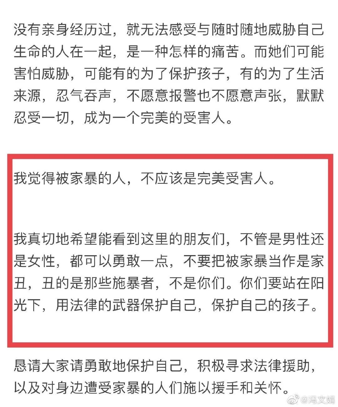 作为主演,冯文娟也在微博上分享了自己的感受。首映礼当天,有好几位观众看完电影后分享了关于家暴的阴影和故事,她也与观众一起痛哭。在拍摄前,她还查阅过很多资料和新闻。只有真正理解被家暴者的处境和心理,才能与他们共情,也才能真正演好这个角色。