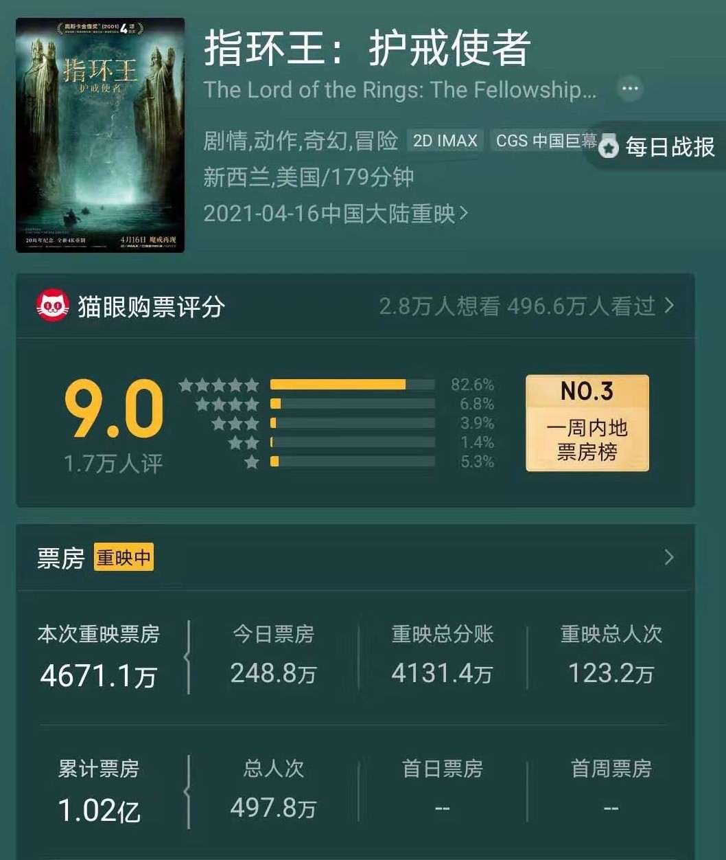 但在激动之余,仔细来观察这次指环王重映的口碑,我们却发现了一个让人难以置信的现象。