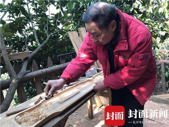 “看嘛,这就是我每天在山上做的事情。”1月11日下午,一位老人指着小露台的木桌说。木桌上,摆着一张挖空中心的木板,还堆满刨子、锯子、卡尺等工具。