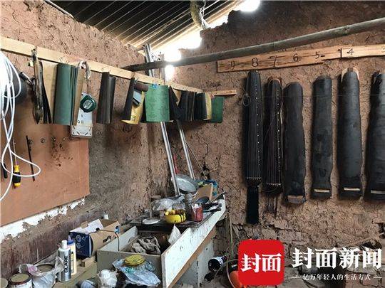 杨师傅租住下茅草屋后,几经改造,请人用铁皮稍作维修,将小茅屋分为前后两个部分。一边搭起了三层木板,用来存放买回的杉木、做琴的工具,一边摆起一张案头,用来练琴。