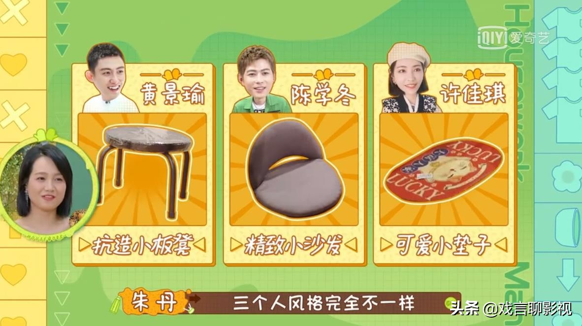 陈学冬选的是精致小沙发,黄景瑜选的是扛造小板凳,而许佳琪则是选了一个画有猫咪图案的小垫子,少女心爆棚,三个人的风格完全不一样,结账时,黄景瑜男友力十足,直接冲在了最前面,还吐槽许佳琪一个小女孩抢啥买单,此话一出,仿佛所有光芒都笼罩在了黄景瑜一人身上