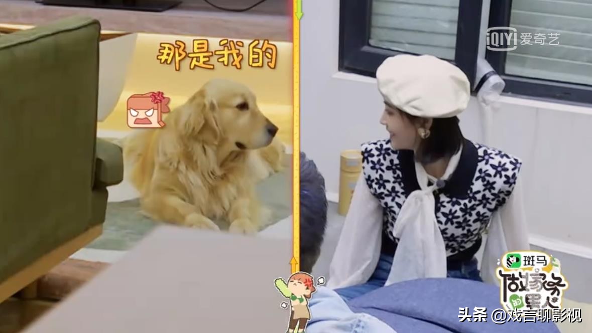 屁股刚落地‘戏精’就走了出来,仿佛真正能听懂陈学冬的话,走过来后直接就对许佳琪撒娇,摆明是在跟她抢占主权,一会都不让许佳琪坐,不得不说金毛太聪明了,说什么都能懂,前一秒被点名表扬,下一秒就因为吃废纸被陈学冬训斥,还上演了在线教训毛孩子的名场面