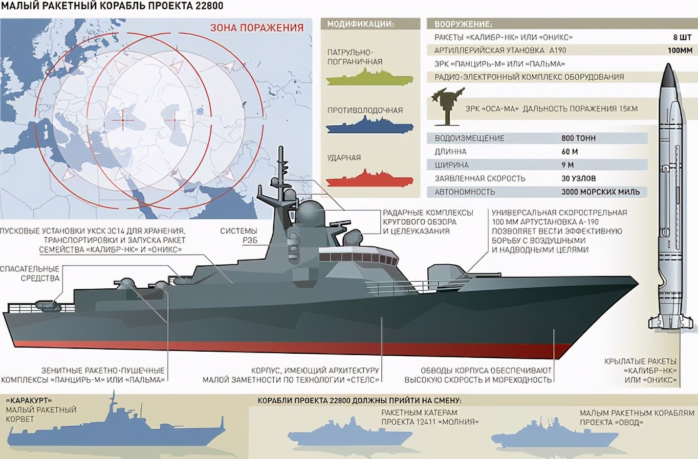 ▲俄罗斯22800“红带蛛”级轻型护卫舰部分性能和装备信息示意图(图片来源于:网络)