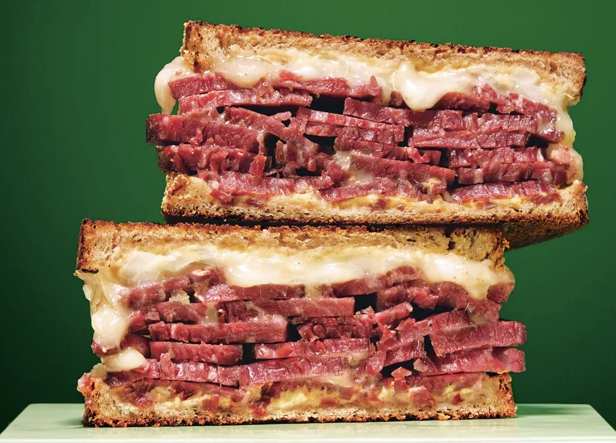 咸牛肉的英文是corned beef,简单来说它就是一种用大颗粒的岩盐腌制的牛肉。历史非常久远,毕竟很早人们就发现盐水可以渗透入肉内,反向挤出原本的水分,使肉中的细菌失活,继而达到长期保存的目的,而且腌制品独有一番风味。