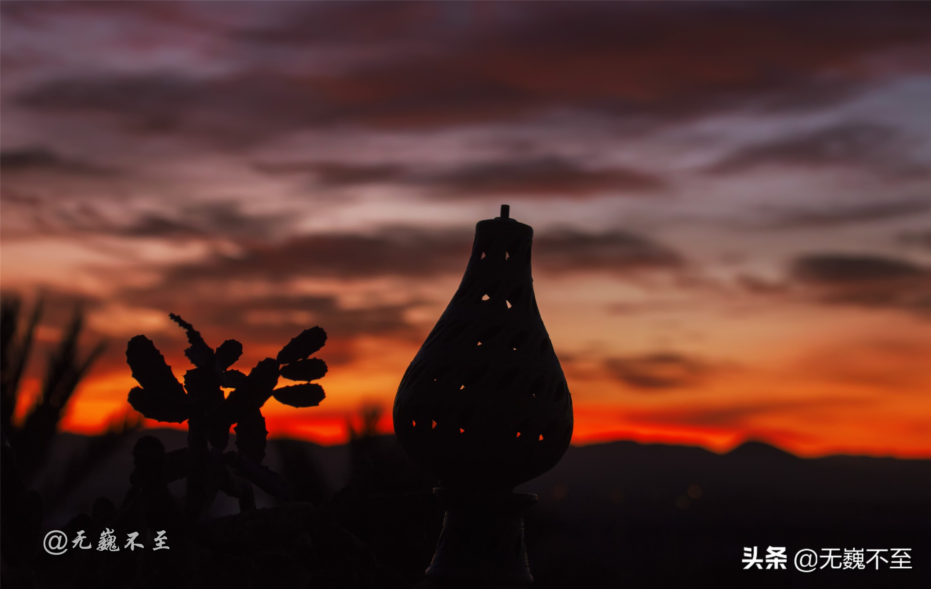 瓦尔扎扎特的朝霞确实有种粗犷至极的霸气,青蓝、暗紫、橘黄、赤红,这些排头兵、先锋队层层将东方渲染,而这所有的华丽铺垫,只为等待太阳神那最后的一跳。这一刻,风停了,树静了,仙人掌和镂空花瓶的造型亦摆好了,我的太阳,就等你闪亮登场了!