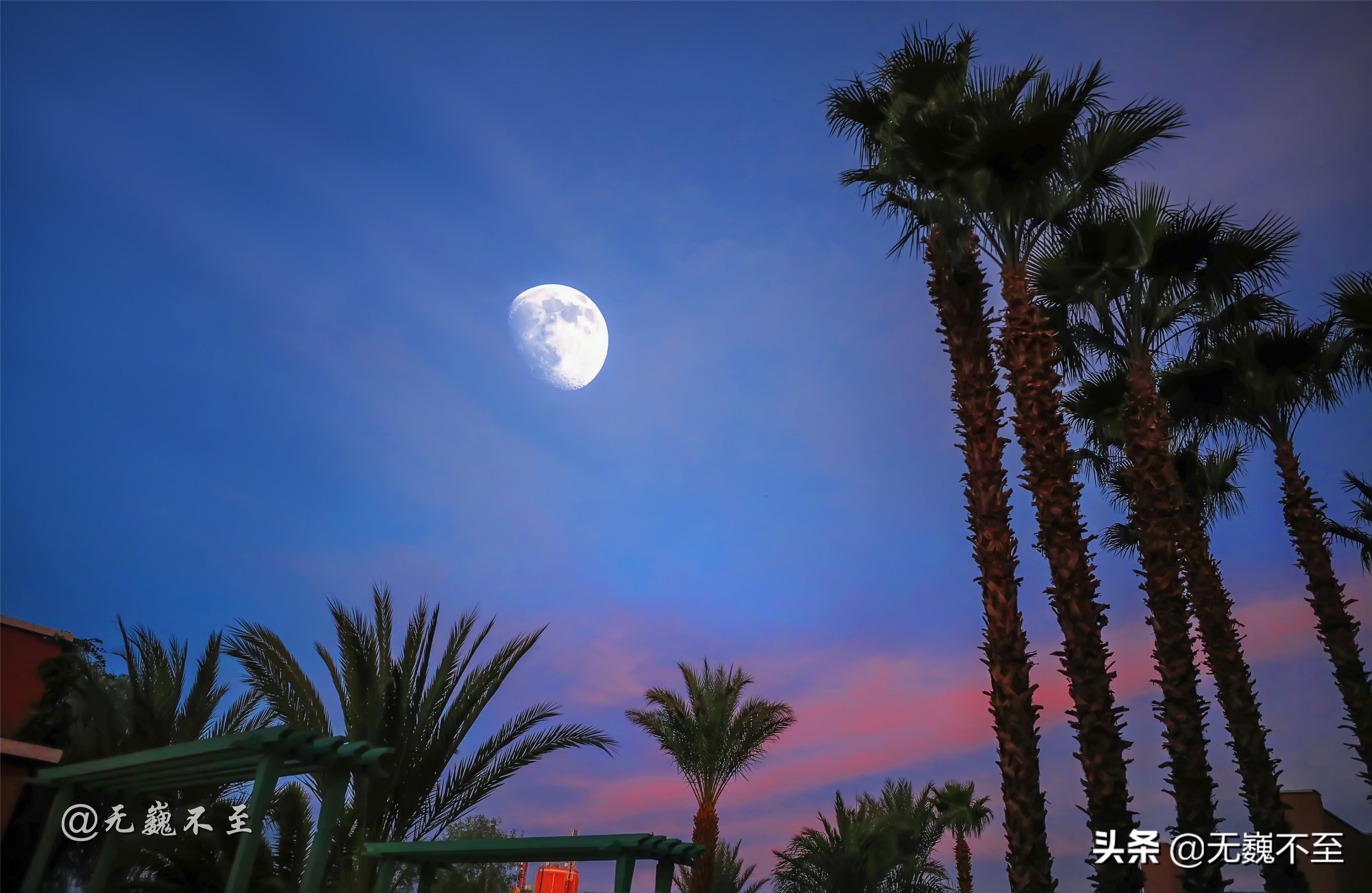 月华似水,椰影摇曳,东方喷薄欲出的朝阳蓄势待发,已经在天际挥洒出几道玫瑰红,黛青色的天空逐渐透出些粉亮,于是空气中也便多了几丝温情暧昧的味道:沙含清露寒犹微,梦醒长庚天欲晓,淡月朦胧暖霞侵,明透棕榈思渺渺。