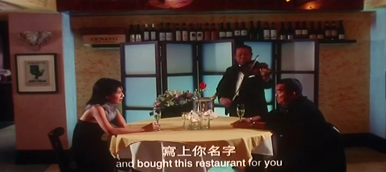 情人节,餐厅,大哥和大嫂相对而坐,旁边的有人拉着小提琴,而镜头在缓缓的慢慢的推进,随着镜头缓慢推进,大哥谈起了两人第一次见面,过往,然后表示自己老了,可以走了。
