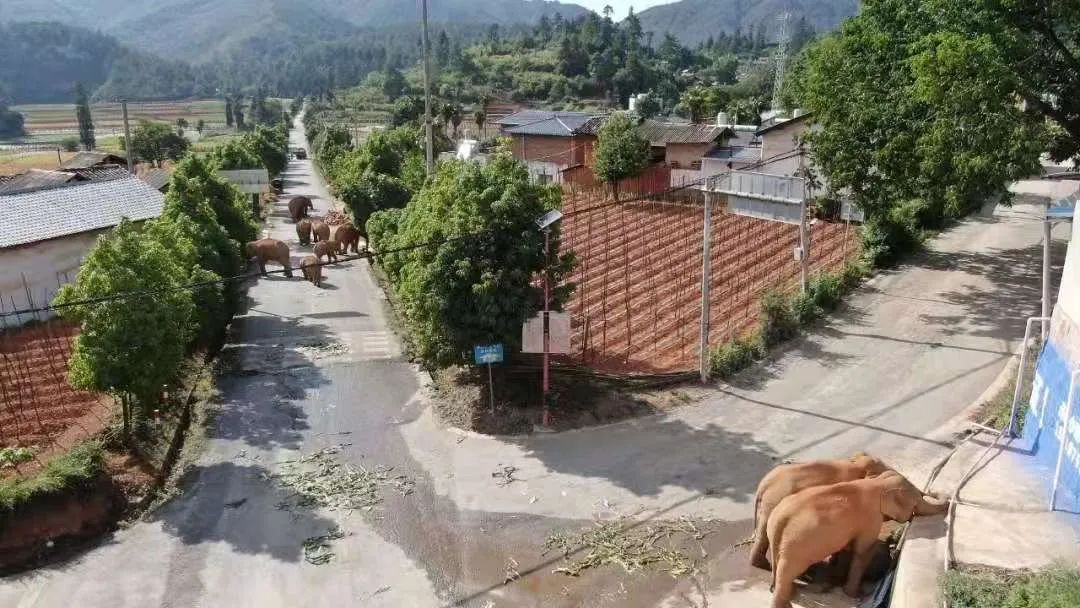 大象们并不知道,在昆明边缘徘徊的几天,它们制造出何等紧张。人类组织出一道万无一失的防线,力求人和象都不要出事。仅6月3日一天,当地共投入应急处置人员及警力630人,14架无人机在空中交替盘旋,106辆渣土车在国道边、沿路村口严阵以待。为诱导象群向南折返,前方人员还在沿线投喂了3.6吨食物,一卡车一卡车的香蕉玉米菠萝被洒在大象可能行进的路线上,人们绞尽脑汁,希望大象转身南下。