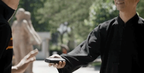 吃着吃着,看到前面有桌客人,手上戴着一核桃手串,他眼睛都直了。