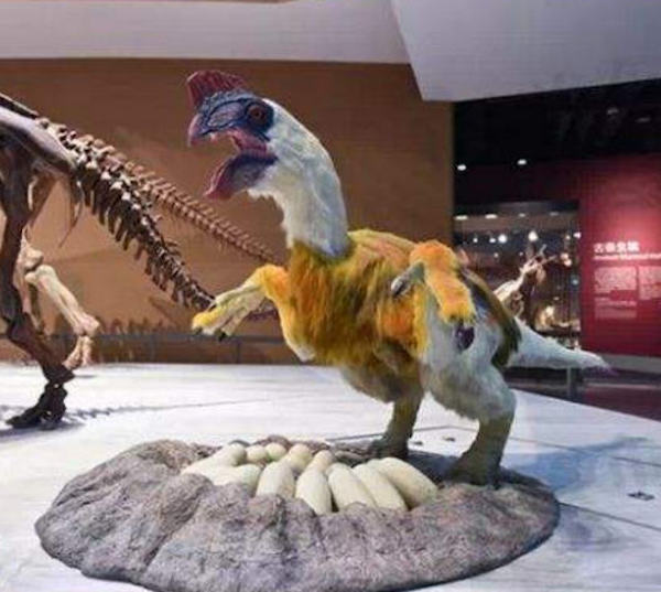 实际上,恐龙与鸟类之间的界限正变得越来越模糊。有些全新复原的恐龙现象,与其说像一只蜥蜴,倒不如说更像一只鸟。在2015年4月重新开发的上海自然博物馆新馆展厅赫然摆放的窃蛋龙复原模型便是如此:毫不夸张地讲,身披五彩羽毛的窃蛋龙实在像极了一只大公鸡。