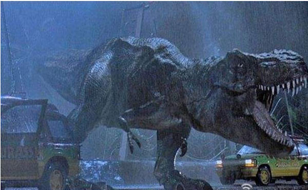 1993年上映的科幻电影《侏罗纪公园》(由斯蒂芬·斯皮尔伯格执导,改编自迈克尔·克莱顿于1990年发表的同名小说)是一部划时代的作品,它是第一部广为使用计算机绘图来制作动物的电影,并成为电影特效上的一个里程碑。依靠强大的cg效果,人类可以按照自己的理解来再现那个失落的世界,而且也是第一次将正确的暴龙形象直观地传播给了大众。这部电影在当时创下了全球电影票房最高纪录,目前则仍然保持着全球电影票房第25位(不计通货膨胀影响)以及北美电影票房第20位(扣除通货膨胀影响)的纪录,同时也是斯皮尔伯格的执导生涯之中票房最高者。