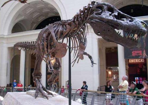 实际上,《侏罗纪公园》三部曲热播的1990年代,正是恐龙发现史上的又一个黄金时期。1990年,在美国南达科塔州发现了一具保存十分完好的暴龙化石,它被命名为“苏”(sue)。从1902年人们第一次发现暴龙到“苏”刚刚出土的1990年,全世界一共只有11具较完整的暴龙化石出土,但无一及得上“苏”的大小(身长12.8米)和保存程度(全身骨骼的90%)。1996年,苏富比拍卖行仅用了8分钟就以836万美元的天价(底价50万美元)将其拍卖给了芝加哥自然历史博物馆——后者得到了麦当劳和迪士尼的鼎力支持。幕后金主迪士尼公司自然也没有吃亏的道理,一具“苏”的复制品也摆在了奥兰多市的迪士尼公园里。
