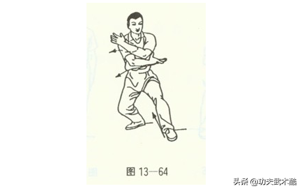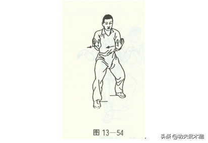 接上动。当对方再向我正面进攻时,我可用两臂对夹挡其攻势。弹掌须借上步之惯性抖臂发劲,劲达两尺骨一侧。