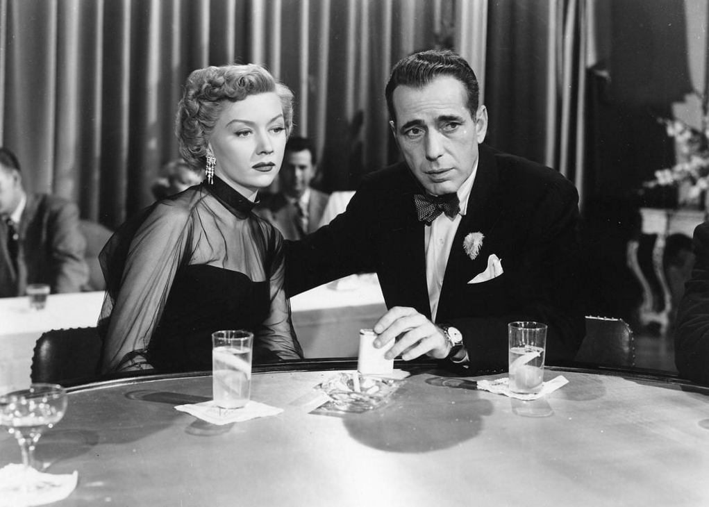 《兰闺艳血》,该片于1950年上映,主要讲述的是斯蒂尔(亨弗莱·鲍嘉 humphrey bogart 饰)是一名编剧,一次偶然中,他结识了名叫米尔德里德(玛莎·斯图尔特 martha stewart 饰)的女子,当晚,斯蒂尔邀请米尔德里德到家中研究剧本,没想到第二天早晨,米尔德里德却被发现死于非命,一时间,斯蒂尔成为了最大的嫌疑人。 幸运的是,邻居劳雷尔(格洛丽亚·格雷厄姆 gloria grahame 饰)用自己的目击证词证明了斯蒂尔的清白,两人以此为契机走到了一起,开始了交往。然而,社会中针对斯蒂尔的风言风语从未停歇,斯蒂尔和劳雷尔之间的感情因此而变得岌岌可危,斯蒂尔日渐暴躁,甚至差一点就失手杀了劳雷尔。最终,杀害米尔德里德的凶手被捉拿归案,但斯蒂尔和劳雷尔的关系却再也回不到过去了。