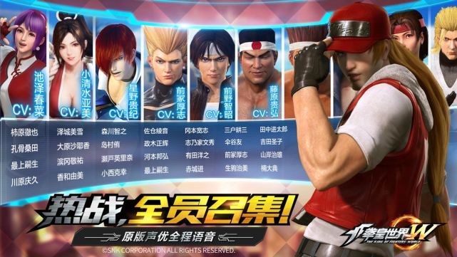 扣人心弦的剧情当然离不开令人陶醉的配音,你是否还沉浸在不知火舞性感而又充满魅力的声音里?是否被草薙京帅气的外表而又冷酷的声音所迷倒?原版声优,全程语音,倾心打造魅力“拳皇”。不知火舞声优:小清水亚美,八神庵声优:星野贵纪,草薙京声优:前野智昭,系列格斗家全员召集,带你感受一场视听盛宴!