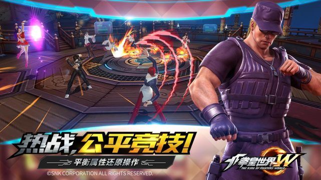 平衡属性,公平竞技是《拳皇世界》最大的亮点之一。《拳皇世界》一直所秉承的理念,就是为玩家创造最舒适,最公平的游戏体验。《拳皇世界》“拳皇大赛”玩法加入属性平衡机制,最大限度保证了所有玩家在同一起跑线上公平竞技,再搭配强有力的打击感,让所有玩家尽情秀操作、秀意识、秀连招,重温街机手感!
