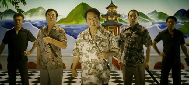 港片江湖片老大出场时一身黑西装身后跟几十个小弟,台湾江湖片老大是马如龙这般带着几个老兄弟江湖行走,回家还要给后辈烧饭。