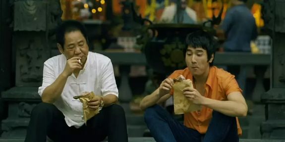 马如龙演了凤小岳的爸爸——一个霸气十足但却可以和小辈坐在门槛上啃鸡腿的老派黑道大哥。