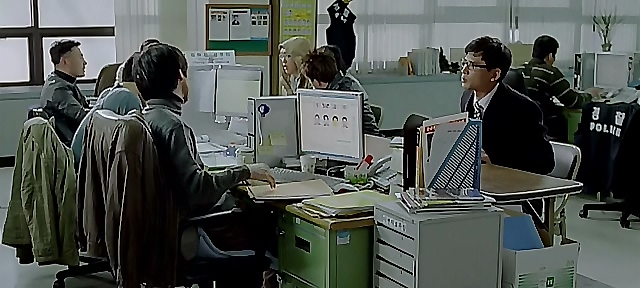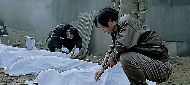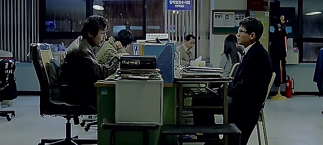 请注意朴忠培的表情。警察封锁了现场,全俊伍坐在警车上,接受升警官盘问。