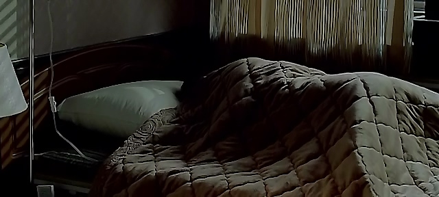 病房内,朴忠培躺在床上,妻子在一旁织着毛衣。