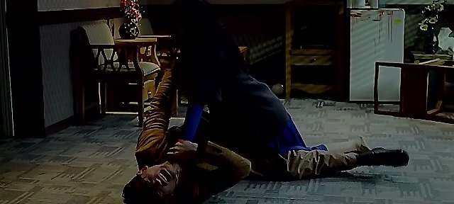 申礼和补刀,全俊伍忍着剧痛拼命招架,补刀不成,申礼和腾出一只手掐住全俊伍的脖子,全俊伍又奋力解锁,双手被控制,申礼和唯有嘴巴得闲,便一口咬了下来,全俊伍趁机拽住其头发,一把把她甩向一边。