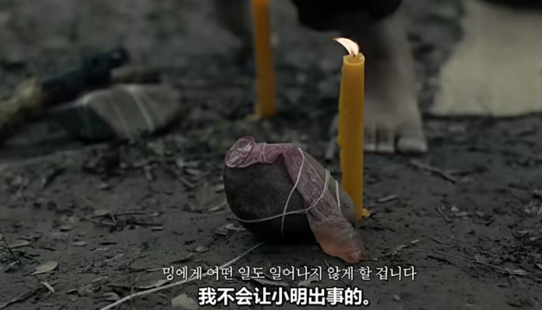 这种拍摄手法也产生了一种让观众化身旁观者的跟踪、窥奇感,仿佛真的在亲眼目睹整个故事。一些生活化的恐怖场景应该让人感同身受了,比如用来做法的鸡蛋打破后流出来了黑色的液体。
