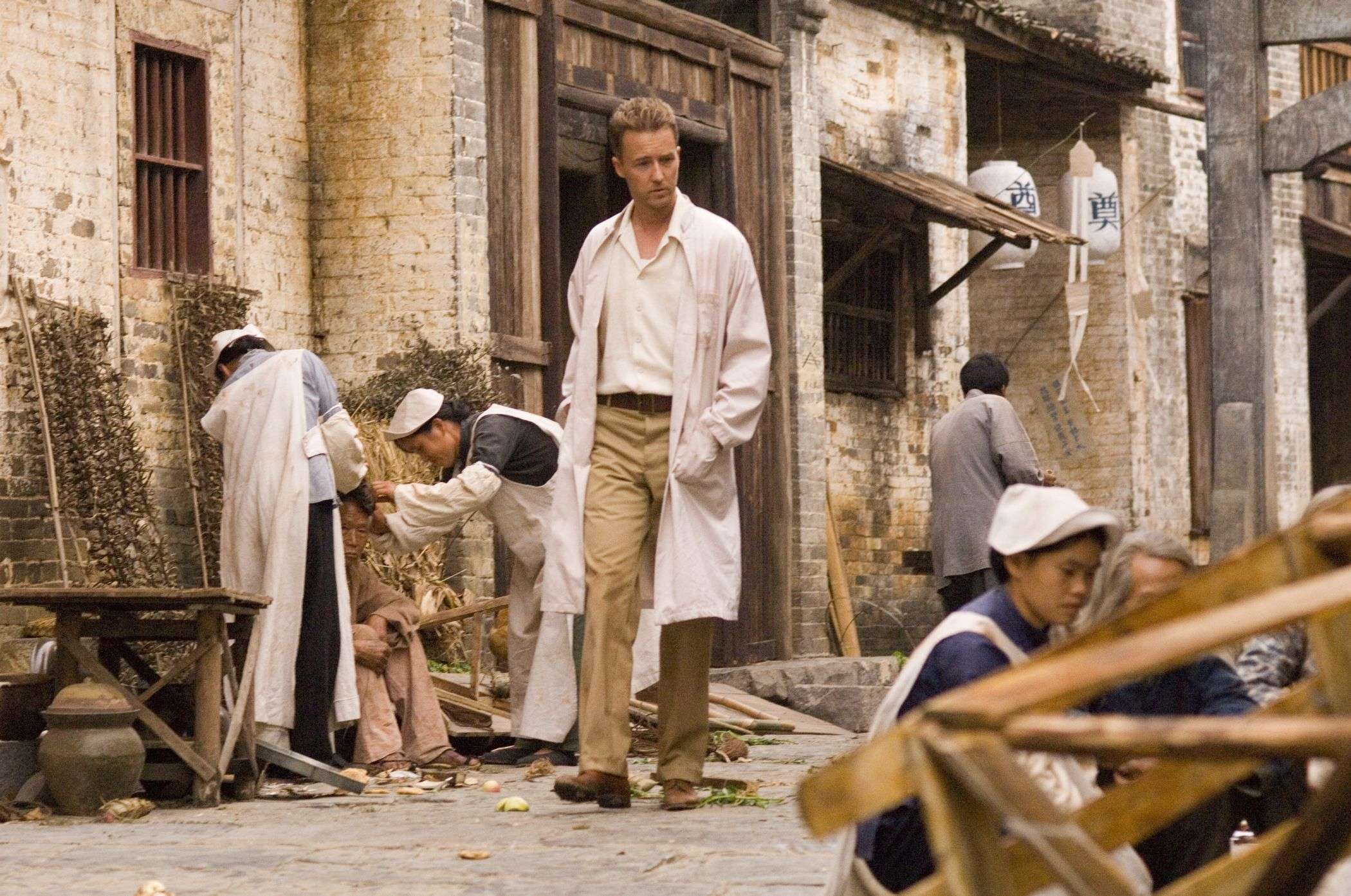凯蒂在这里目睹了那些疾病和战争中流离失所、无家可归的人们,见证了生死关头,修女们舍己救人的奉献精神。而她眼中不解风情的冷漠丈夫,在这里摇身一变,是舍身治疗瘟疫的“救世主”。